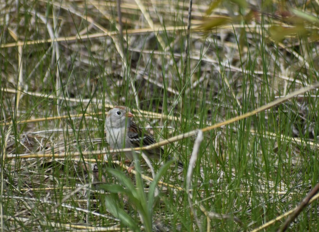 Then we moved on, with a ‘fun little adventure’ to recover my notebook (with a list of all the birds I’d seen on the trip so far) when I realized I’d dropped it somewhere on the trail; and a blister in my shoe. It was worth it, though, when I saw my third new species of the day – a Field Sparrow, one of the few sparrow species I can readily identify. I’m terrible with sparrows!