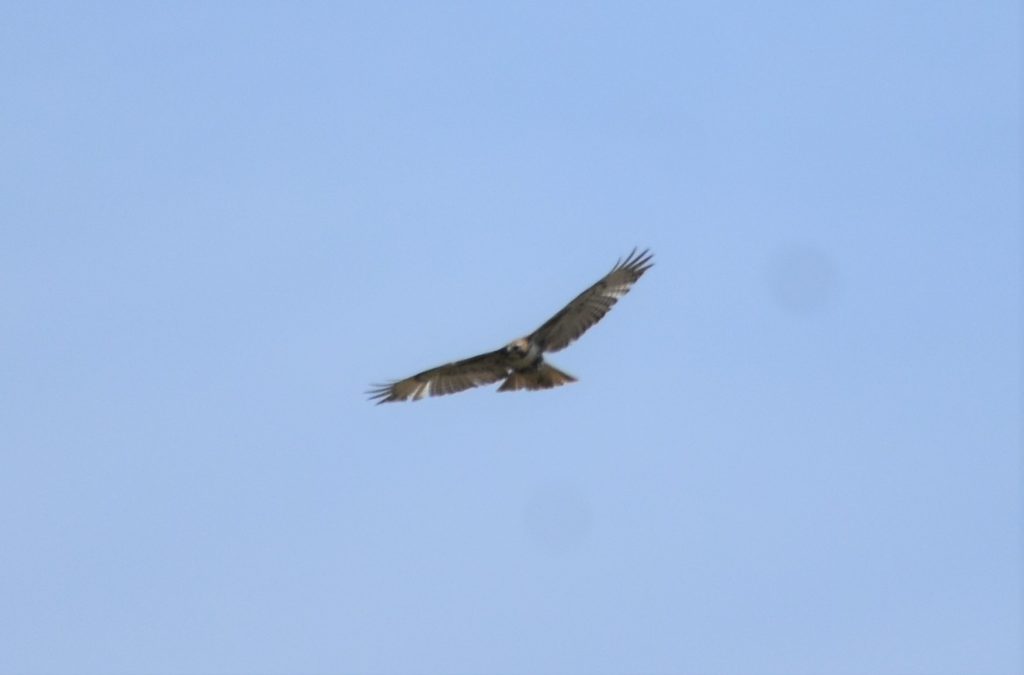 My next new species was a Northern Harrier, seen by several people. It was flying with several more Turkey Vultures, but I didn’t get a great look and, sadly, no photos. We had arrived too late in the day for Sharp-shinned Hawks, so we didn’t see any, but we did see a Red-tailed Hawk.