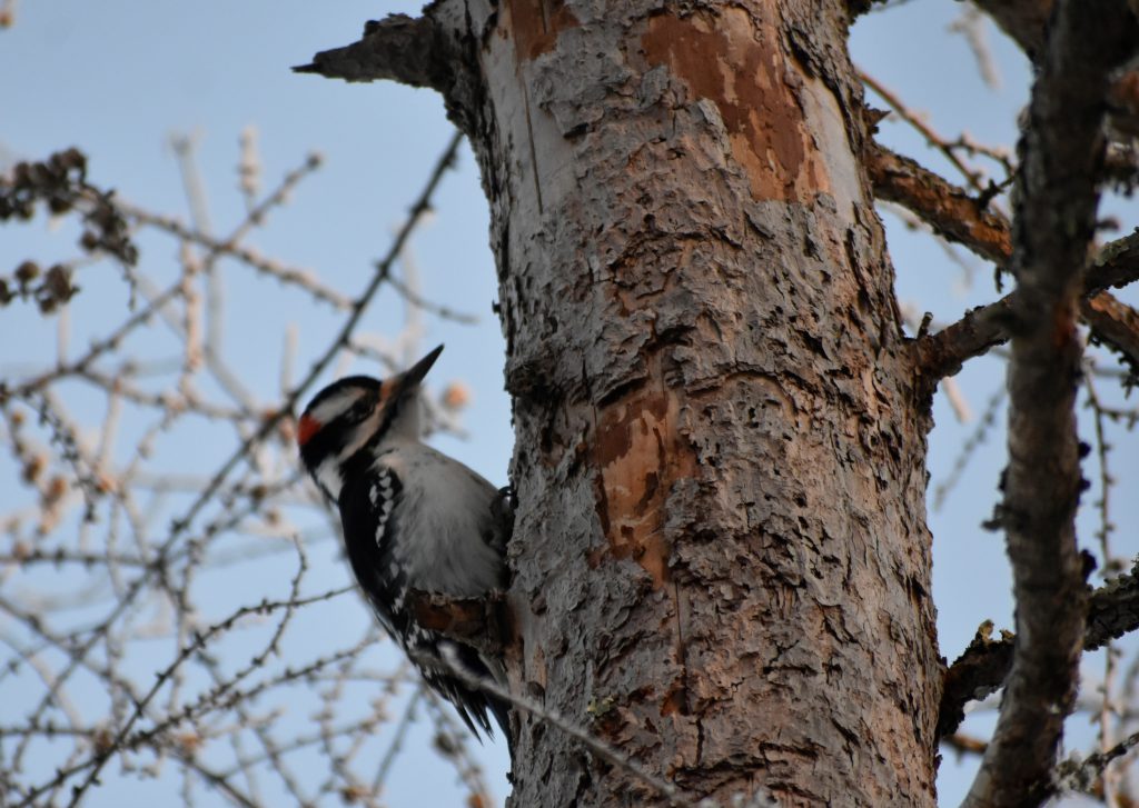 Next we tried Warren Woessner Bog Boardwalk, which is 900 feet long and lined with feeders. There, we didn’t find a lot, since it was getting dark, but we did see some chickadees, a Red-breasted Nuthatch, a Downy Woodpecker, a Brown Creeper, and a Common Raven flying overhead. After that, we headed home, since before long it would be too dark even for owls!