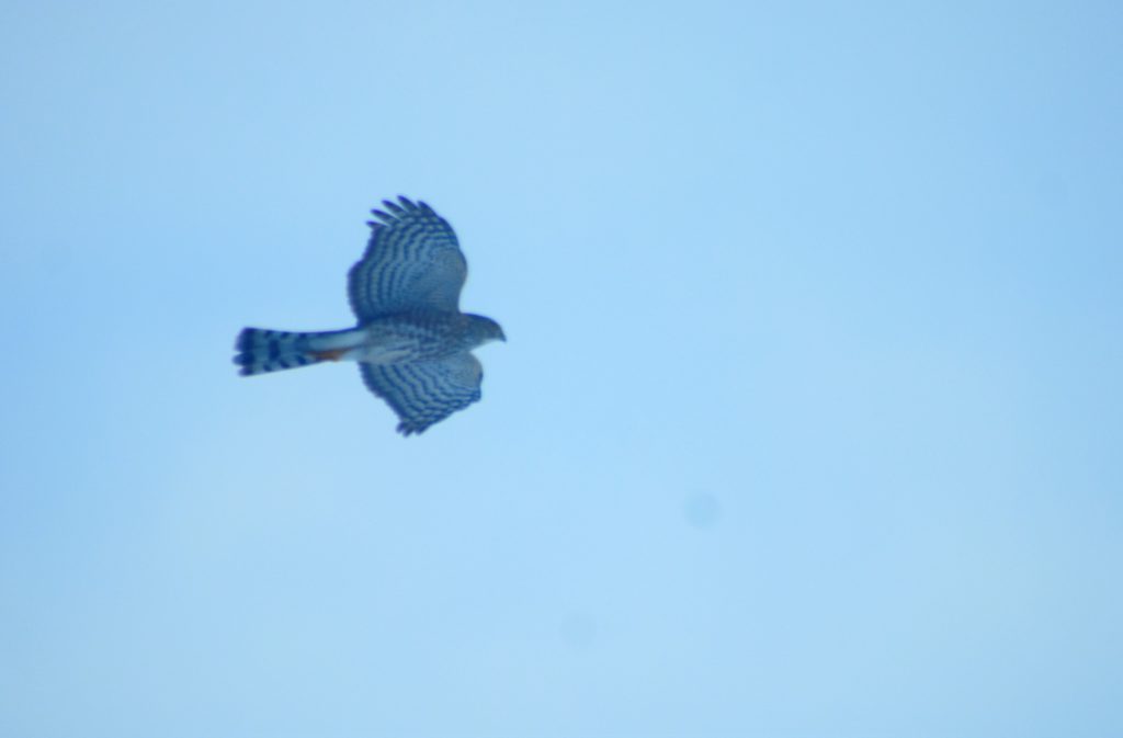 Eventually, the first new species arrived – a fast-moving Merlin. He was in a hurry, a small, dark bird flapping continuously, unlike most larger raptors, who soar. I didn’t manage to score a photo of this species, though I saw a few more by the end of the day. Unfortunately, we didn’t see any American Kestrels, which are one of my favorite raptors, while we were there, but I have seen one before, so it wasn’t too much of a disappointment.